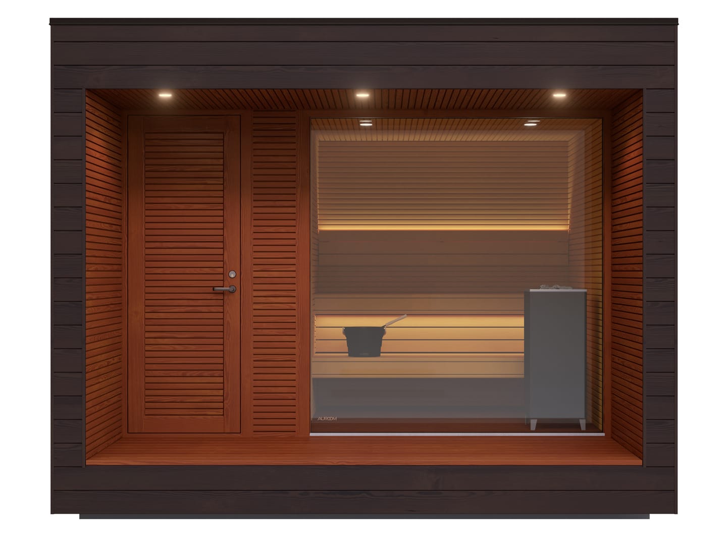 Alles an dieser Sauna spricht für Qualität. Die Außenverkleidung ist auf extreme klimatische Bedingungen ausgelegt: Das nordische Fichtenholz wird wärmebehandelt, gebürstet und lackiert. Wände, Boden und Dach sind effizient isoliert und die solide Dachkonstruktion kann Schnee in großen Mengen tragen. Alle diese Komponenten zusammen ergeben eine Sauna mit hohen Wärmedämmeigenschaften und hoher Langlebigkeit.