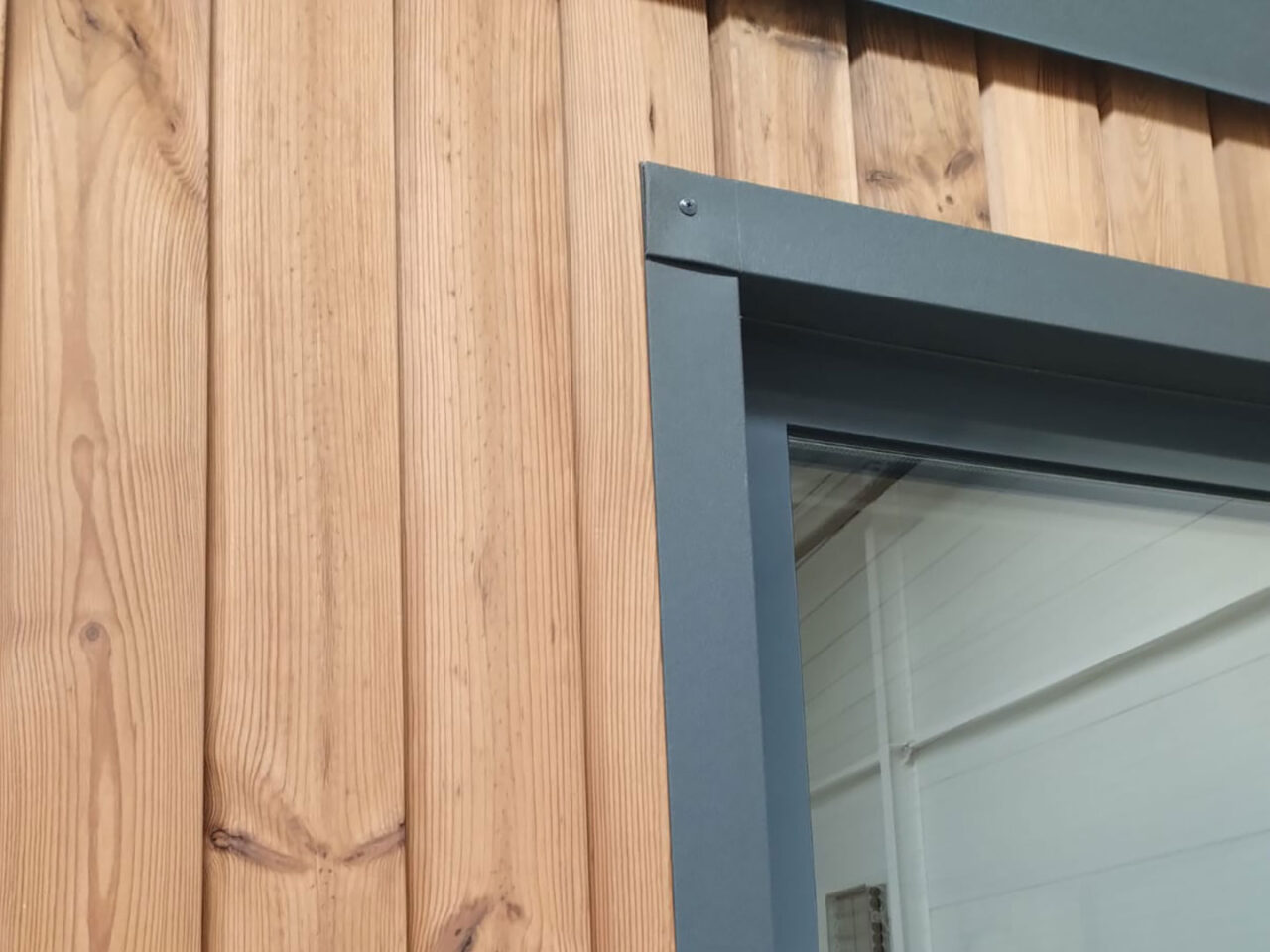 – Verkleidung: Rhombusleisten aus thermisch behandelter Kiefer