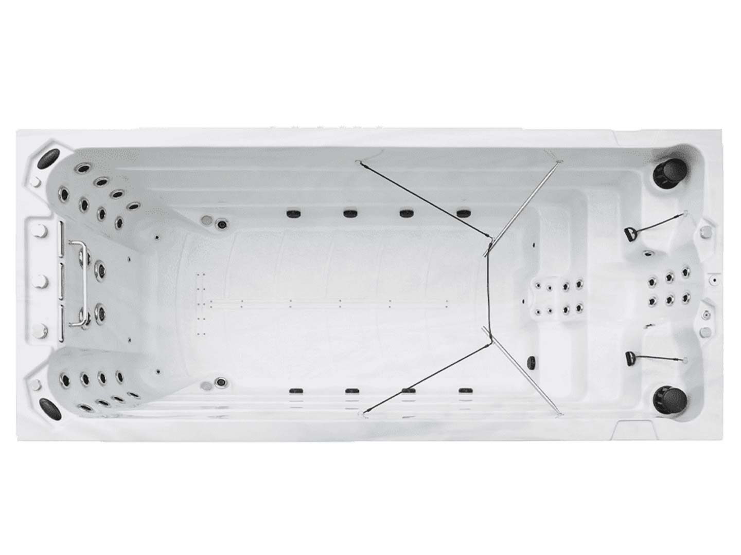 Tauchen Sie in den großzügigen Pool ein und genießen Sie das Schwimmen gegen den einstellbaren Gegenstrom, um Ihre Schwimmtechnik zu verbessern.