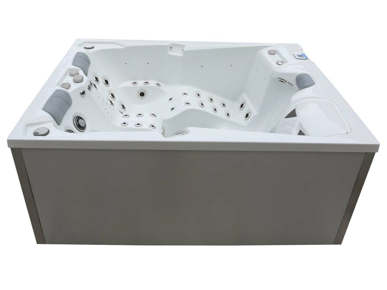 Was den Whirlpool wirklich von anderen Modellen abhebt, sind seine technischen Merkmale. Mit beeindruckenden fünf Pumpen wird sichergestellt, dass das Wasser immer in Bewegung bleibt, optimal zirkuliert und stets sauber bleibt. Doch das eigentliche Highlight sind die 82 Massagedüsen aus hochwertigem Edelstahl. Diese Düsen sind nicht nur langlebig und ästhetisch ansprechend, sondern sie bieten auch eine tiefenentspannende Massage, die jeden Muskel in Ihrem Körper erfrischt.